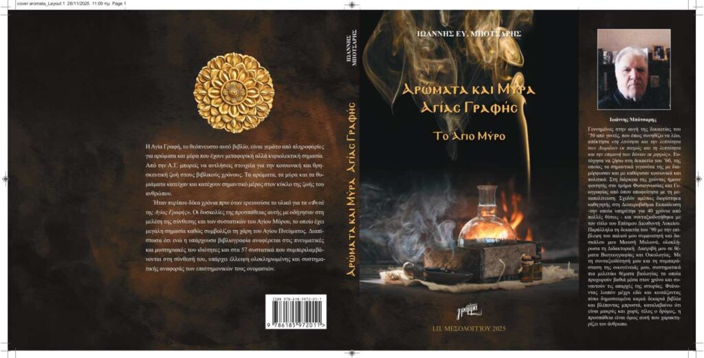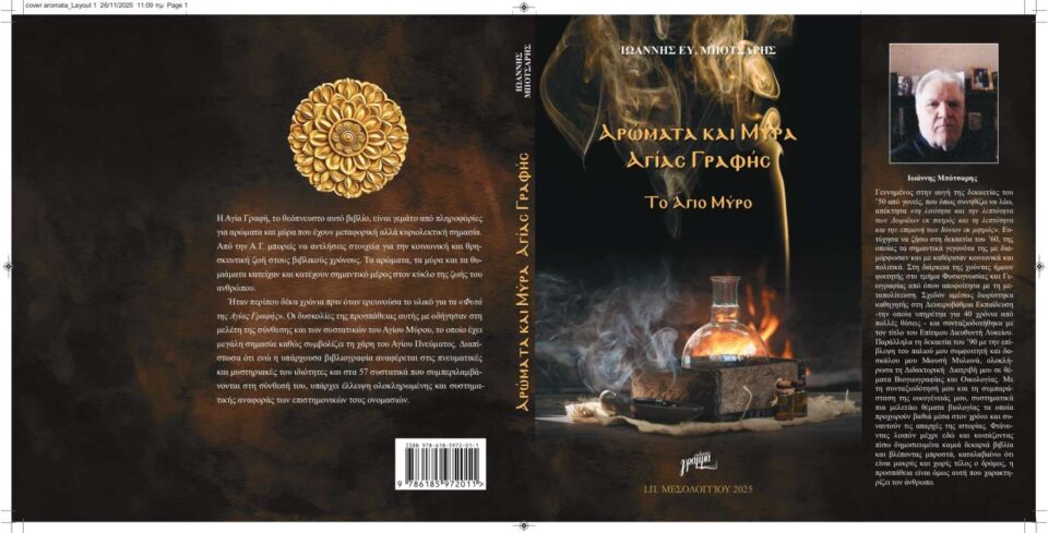 Εκδόθηκε το νέο βιβλίο του Θέρμιου συγγραφέα Γιάννη Μπότσαρη «ΑΡΩΜΑΤΑ ΚΑΙ ΜΥΡΑ ΑΓΙΑ ΓΡΑΦΗΣ – ΤΟ ΑΓΙΟ ΜΥΡΟ»