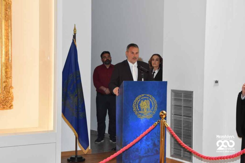 Ιδιαίτερη στιγμή της βραδιάς αποτέλεσε η τοποθέτηση του Δημάρχου Ιεράς Πόλεως Μεσολογγίου, κ. Σπυρίδων Β. Διαμαντόπουλο, ο οποίος απευθυνόμενος συμβολικά στον ίδιο τον πίνακα, τον καλωσόρισε στον τόπο όπου πραγματικά ανήκει. Με λόγο άμεσο και ανθρώπινο, μίλησε για την επιστροφή όχι απλώς ενός έργου τέχνης, αλλά ενός κομματιού της ψυχής του Μεσολογγίου, τονίζοντας πως η πόλη αναγνωρίζει στο έργο αυτό τη δική της ιστορία, τις θυσίες και την ταυτότητά της.
