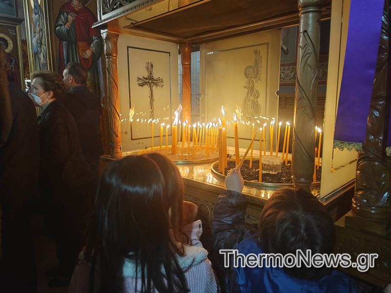 Σε κλίμα ευλάβειας και κατάνυξης τελέσθηκε απόψε Μεγάλη Πέμπτη 13 Απριλίου, η Ακολουθία των Αγίων και Αχράντων Παθών του Χριστού, στον Ιερό Ναό Κοιμήσεως της Θεοτόκου και στον Ιερό Ναό Αγίου Δημητρίου Θέρμου.