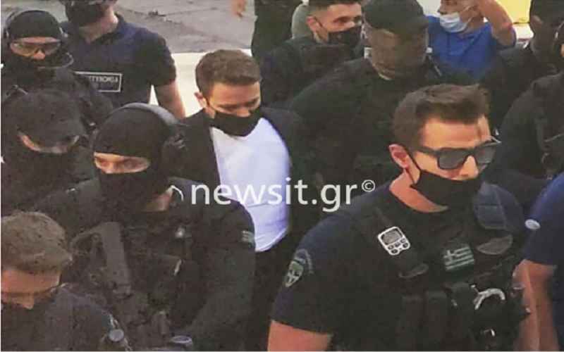 Ο 32χρονος Μπάμπης Αναγνωστόπουλος μεταφέρθηκε φορώντας αλεξίσφαιρο γιλέκο, ενώ ήταν δεμένος πισθάγκωνα. Ανέκφραστος μεταφέρθηκε συνοδεία των αστυνομικών.