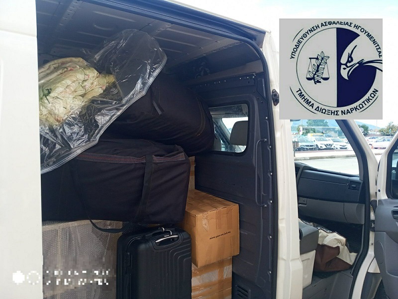 Στο εσωτερικό του οχήματος βρέθηκαν και κατασχέθηκαν (8) ταξιδιωτικοί σάκοι, που περιείχαν συνολικά (42) δέματα με ακατέργαστη κάνναβη, συνολικού βάρους (256) κιλών και (310) γραμμαρίων.