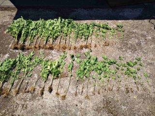 Ο συλληφθείς είχε τοποθετήσει στο αγροτεμάχιο παλέτα καλυμμένη με νάιλον και καλλιεργούσε τα δενδρύλλια σε γλάστρες, που ήταν τοποθετημένες ανάμεσα σε βάτα, καλάμια και λυγαριές, προκειμένου να παρέχει φυσική κάλυψη, ενώ είχε συνδέσει σε στάβλο του λάστιχο για το πότισμα των φυτών.