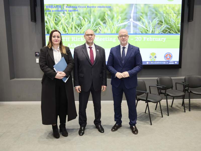 Στις 19 και 20 Φεβρουαρίου 2026 πραγματοποιήθηκε, στις εγκαταστάσεις του Υπουργείου Κλιματικής Κρίσης και Πολιτικής Προστασίας στην Αθήνα, η Εναρκτήρια Συνάντηση (Kick-off Meeting) του ευρωπαϊκού έργου με τίτλο «Border Resilience and Prevention against Natural and Environmental Hazards» και ακρωνύμιο «BREATH».