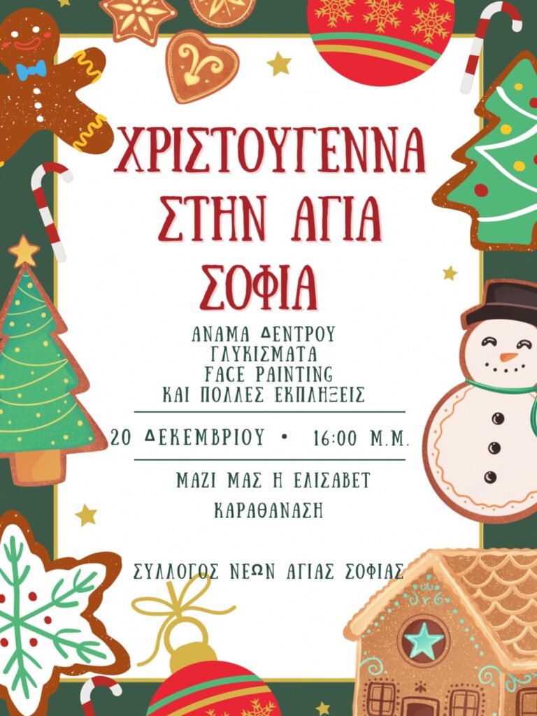 Ο Σύλλογος Νέων Αγίας Σοφίας ανακοίνωσε την τροποποίηση της ημερομηνίας και ώρας για τη Χριστουγεννιάτικη εκδήλωση «Χριστούγεννα στην Αγία Σοφία».