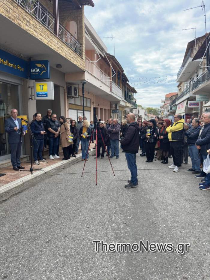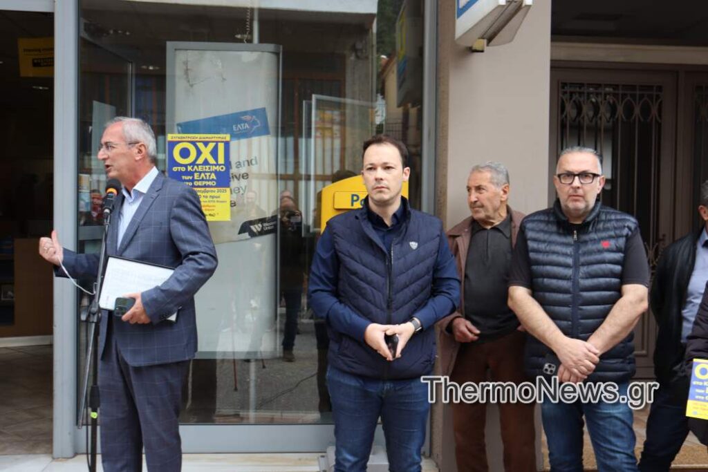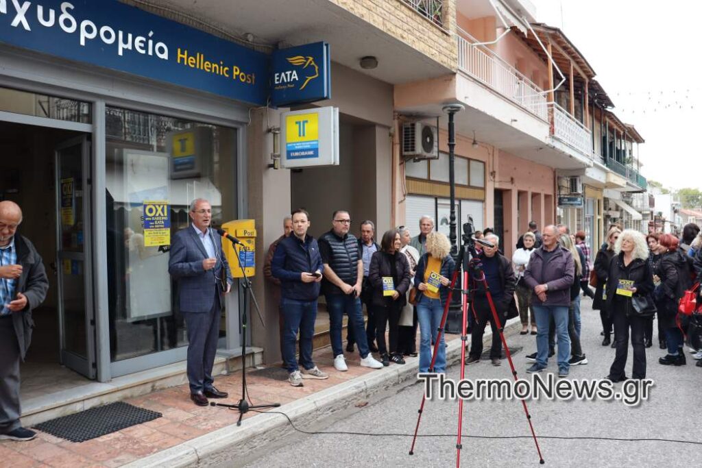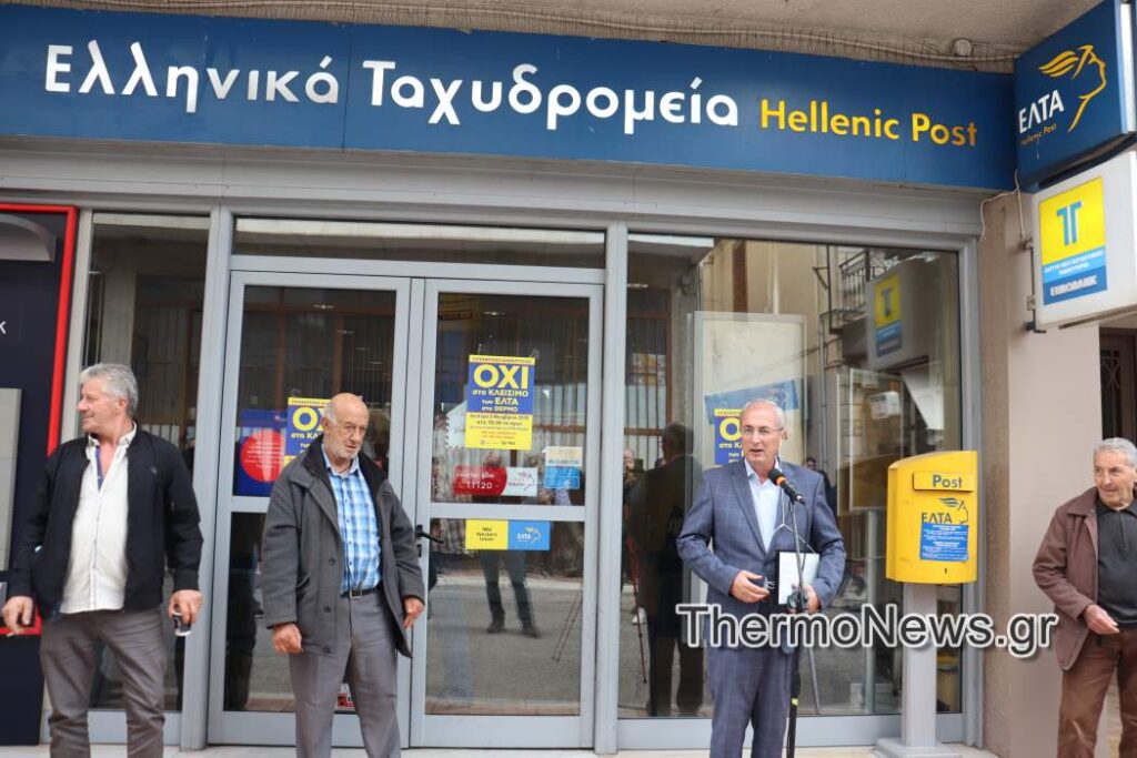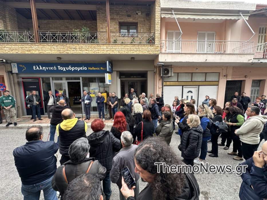 Μεγάλη ήταν η συμμετοχή των πολιτών στη συγκέντρωση διαμαρτυρίας που διοργάνωσε ο Δήμος Θέρμου, με αφορμή την απόφαση για το επικείμενο κλείσιμο του ταχυδρομικού καταστήματος της περιοχής.