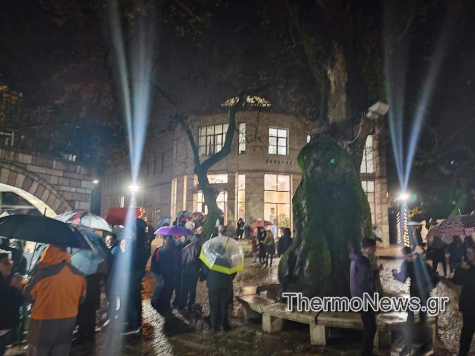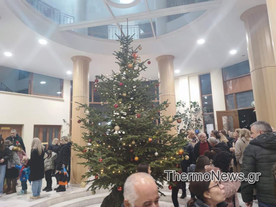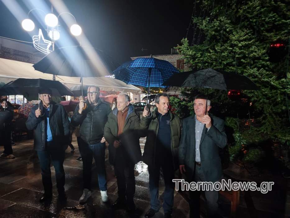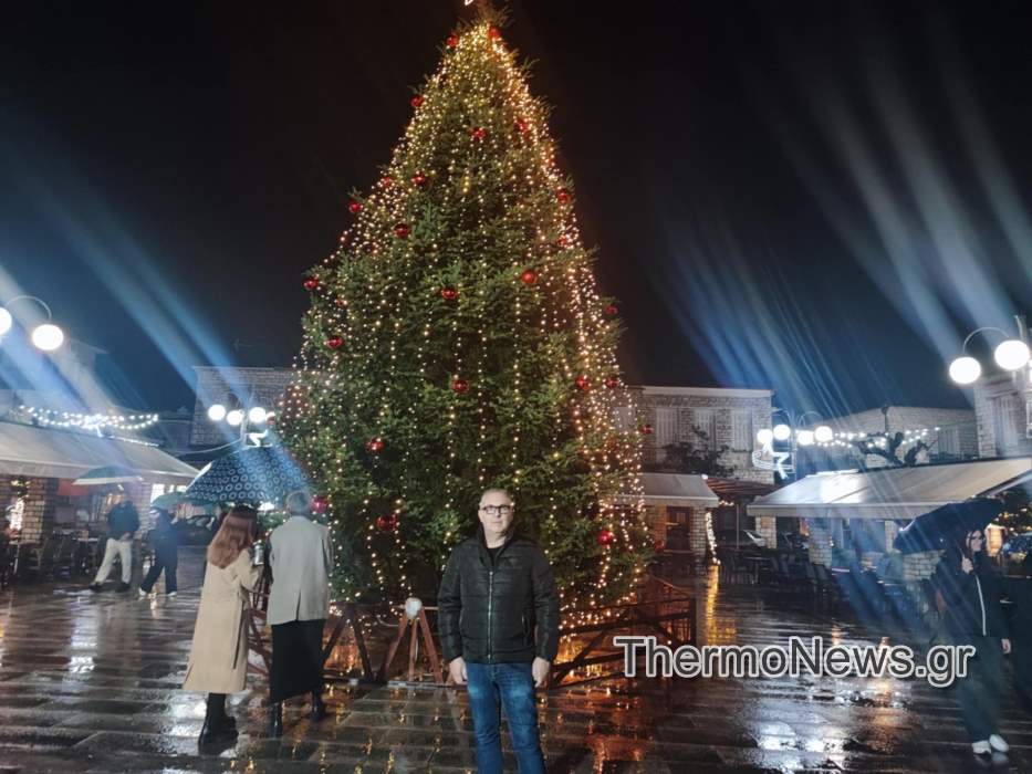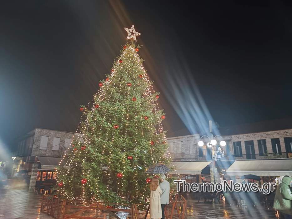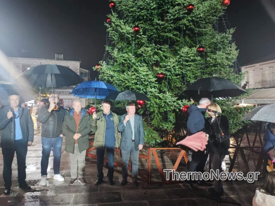 Σε μια ζεστή και γιορτινή ατμόσφαιρα, παρά τη συνεχιζόμενη βροχόπτωση, πραγματοποιήθηκε το απόγευμα του Σαββάτου 6 Δεκεμβρίου 2025 η επίσημη φωταγώγηση του Χριστουγεννιάτικου δέντρου στην κεντρική πλατεία του Θέρμου.