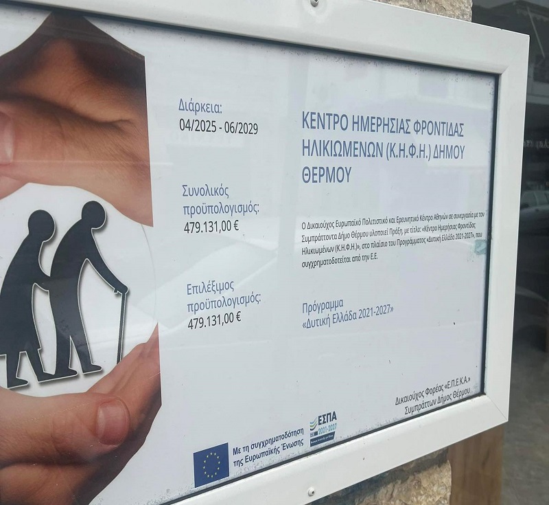 Από σήμερα, Πέμπτη 9 Οκτωβρίου 2025, ξεκίνησε επίσημα η υποβολή αιτήσεων συμμετοχής για το νέο Κέντρο Ημερήσιας Φροντίδας Ηλικιωμένων (Κ.Η.Φ.Η.) Θέρμου, τη νέα κοινωνική δομή του Δήμου Θέρμου που υλοποιείται από το Ευρωπαϊκό Πολιτιστικό & Ερευνητικό Κέντρο Αθηνών (Ε.Π.Ε.Κ.Α.), στο πλαίσιο του προγράμματος «Δυτική Ελλάδα 2021–2027».