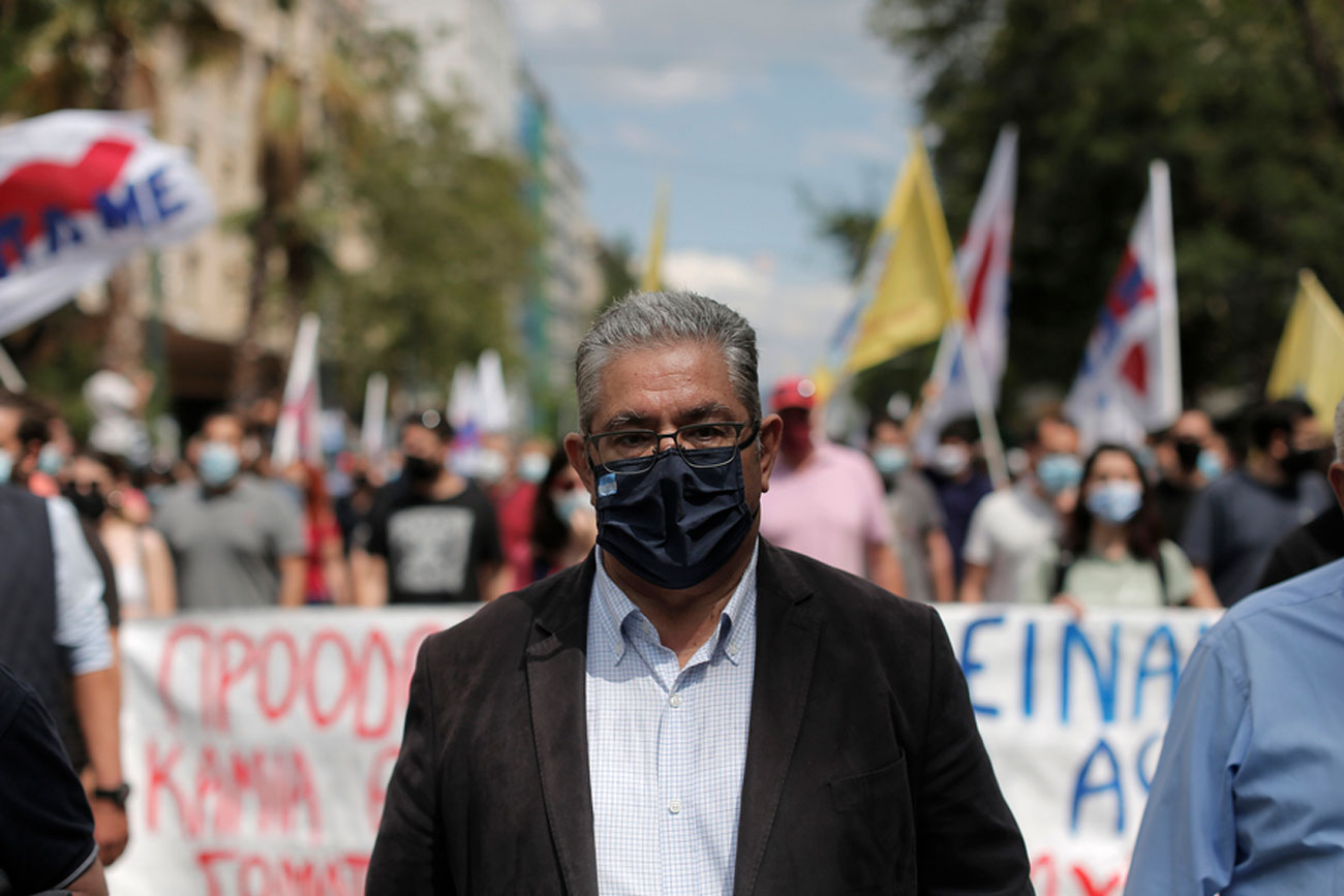 Ο Δημήτρης Κουτσούμπας ήταν από τους πρώτους που έφτασαν στην απεργιακή συγκέντρωση του ΠΑΜΕ στα Προπύλαια.