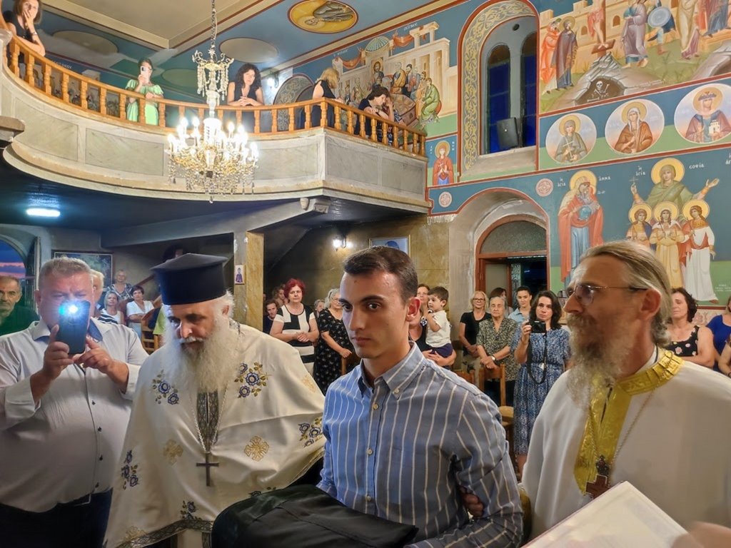Επίσης την Παρασκευή 11 Αυγούστου 2023 στον Ιερό Ναό Κοιμήσεως της Θεοτόκου στην Αγία Σοφία Θέρμου απένειμε το οφφίκιο του Πρωτοπρεσβυτέρου στον π. Κωνσταντίνο Παπακωστόπουλο, επιβραβεύοντάς την έως σήμερα διακονία του στην Ενορία. Τον συνεχάρη για την ανέγερση του Πνευματικού Κέντρου που κοσμεί τον Ναό, για την αγιογράφηση του Ναού που φιλοτεχνεί αυτός και η πρεσβυτέρα του και για την όμορφη εφηβική γυναικεία χορωδία που έψαλλε, τρία από τα μέλη της οποίας είναι θυγατέρες του π. Κωνσταντίνου. Επίσης χειροθέτησε αναγνώστη τον υιό του π. Κωνσταντίνου, Θεολόγο Παπακωστόπουλο, φοιτητή θεολογίας, ευχόμενος σε αυτόν να διακονεί με ζήλο και ταπείνωση το ιερό Αναλόγιο και την τοπική Εκκλησία.