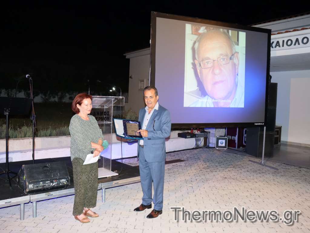 Από τον Πρόεδρο της ”Εταιρείας Φίλων Μουσείου και Αρχαιολογικού Χώρου Θέρμου” κ. Γεώργιο Χριστόπουλο απονεμήθηκε Τιμητική Πλακέτα στη σύντροφο του Αντώνη Βασιλόπουλου κα Αλίκη Γάγαλη.