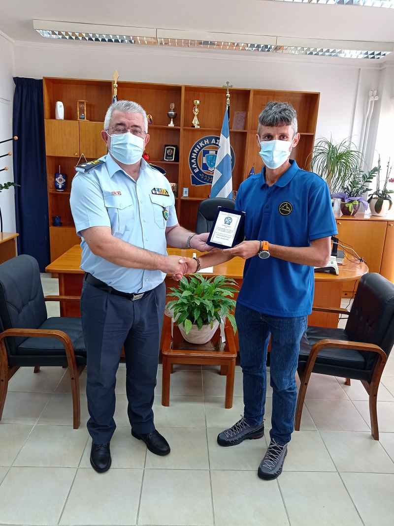Ο Υποστράτηγος Απόστολος Μαρτζάκλης, απένειμε τιμητική πλακέτα στον Υπαρχιφύλακα Φώτιο Ζησιμόπουλο, ως ένδειξη αναγνώρισης της διάκρισής του αλλά και για την προσφορά του στην Ελληνική Αστυνομία. Παράλληλα, τον επαίνεσε για το ήθος του, τον επαγγελματισμό του και τον εξαίρετο χαρακτήρα του.