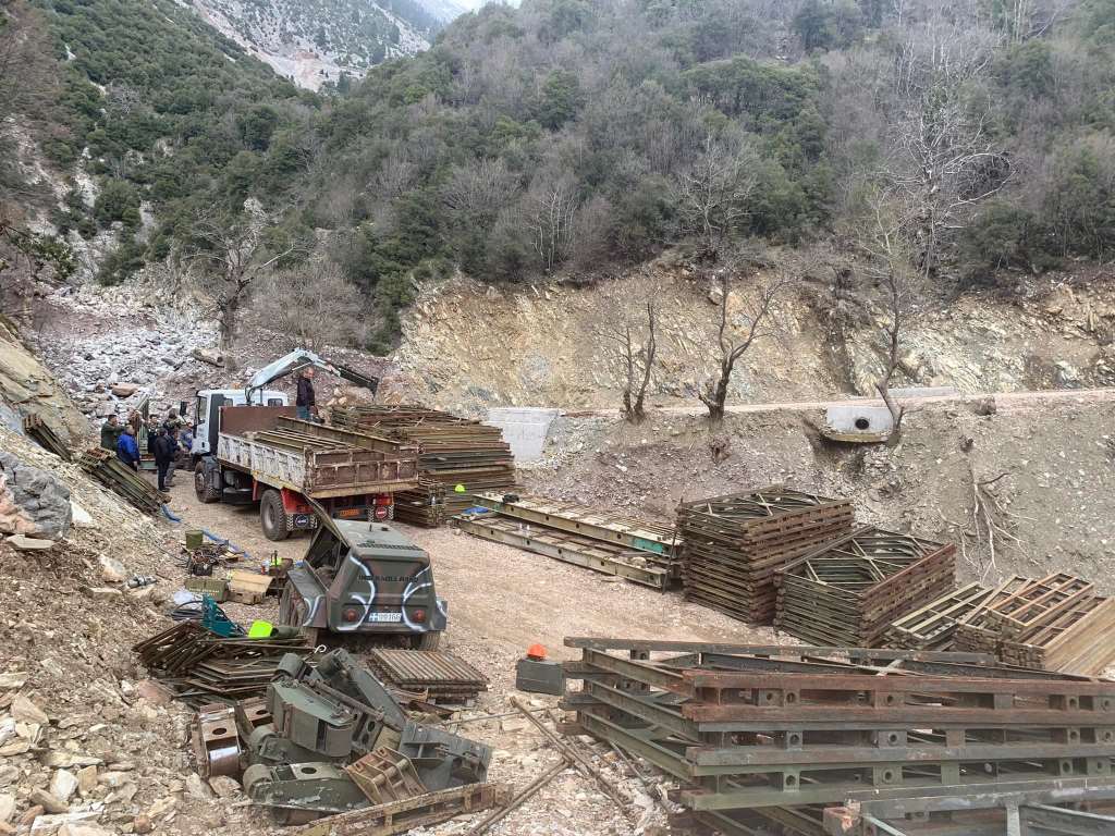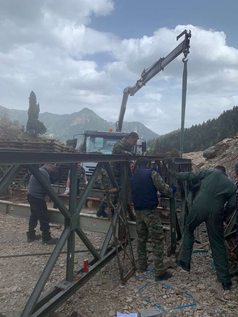 Κλιμάκιο της ΜΟΜΚΑ βρίσκεται από χθες, Δευτέρα 28 Μαρτίου, στη θέση «Μύλος» του δρόμου Αμβρακιάς – Αργυρού Πηγαδίου Δήμου Θέρμου, για την συναρμολόγηση της στρατιωτικής γέφυρας, η οποία θα έχει άνοιγμα περίπου 40 μέτρων μήκους και 4 μέτρων πλάτους.