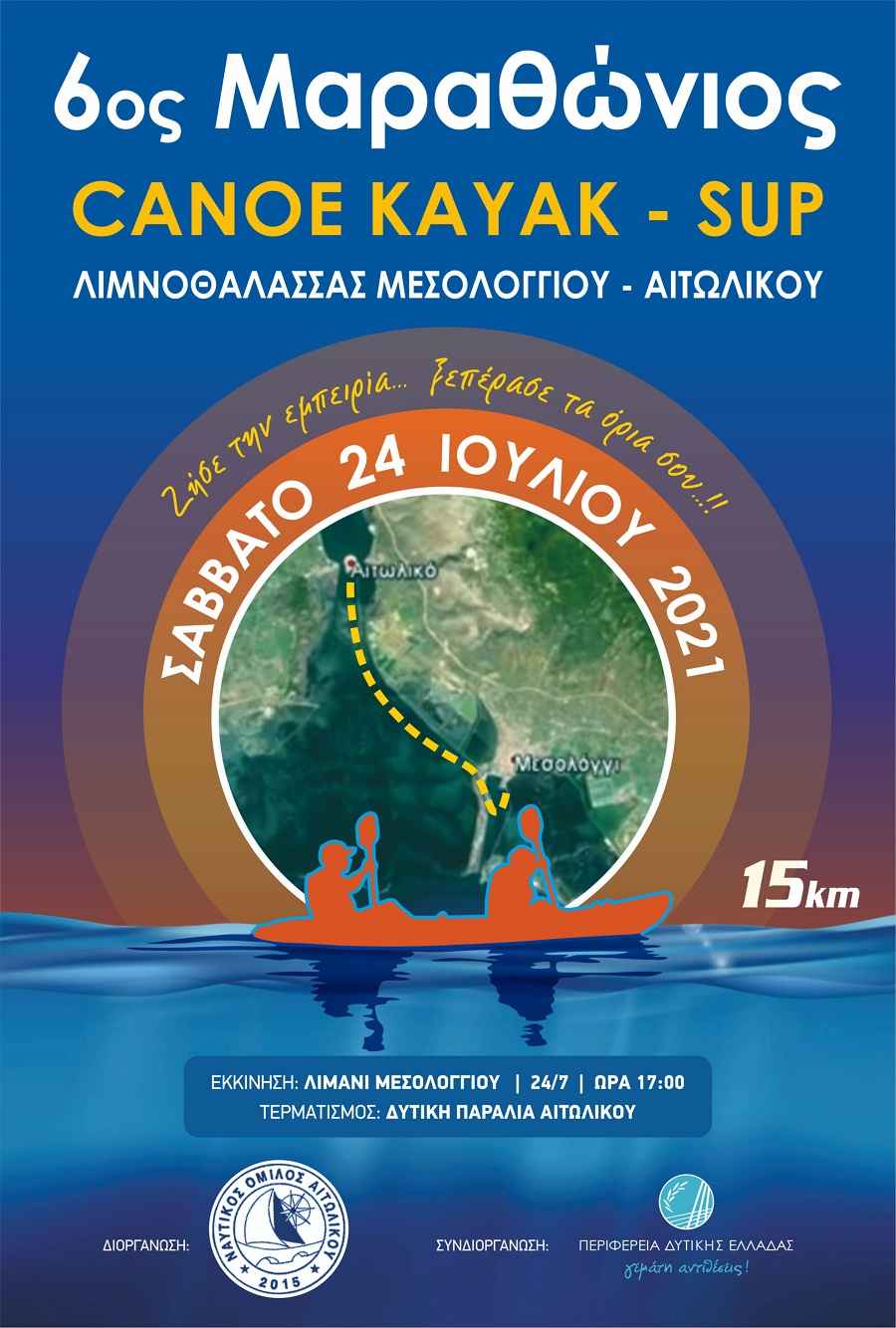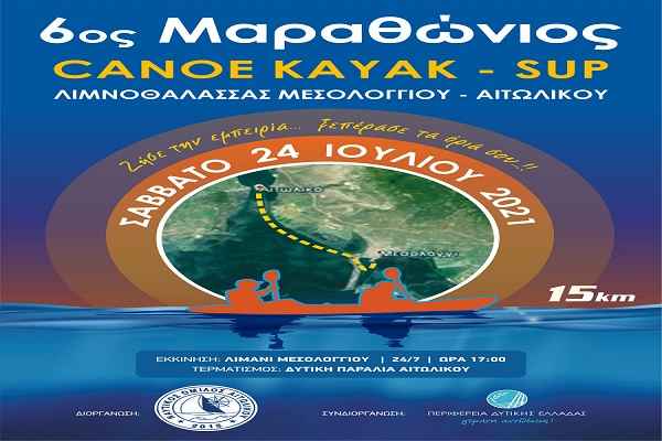 Ο Ναυτικός Όμιλος Αιτωλικού και η περιφέρεια Δυτικής Ελλάδος, προκηρύσσουν και συνδιοργανώνουν τον6ο Μαραθώνιο Κανόε Καγιάκ στη λιμνοθάλασσα Αιτωλικού Μεσολογγίου.