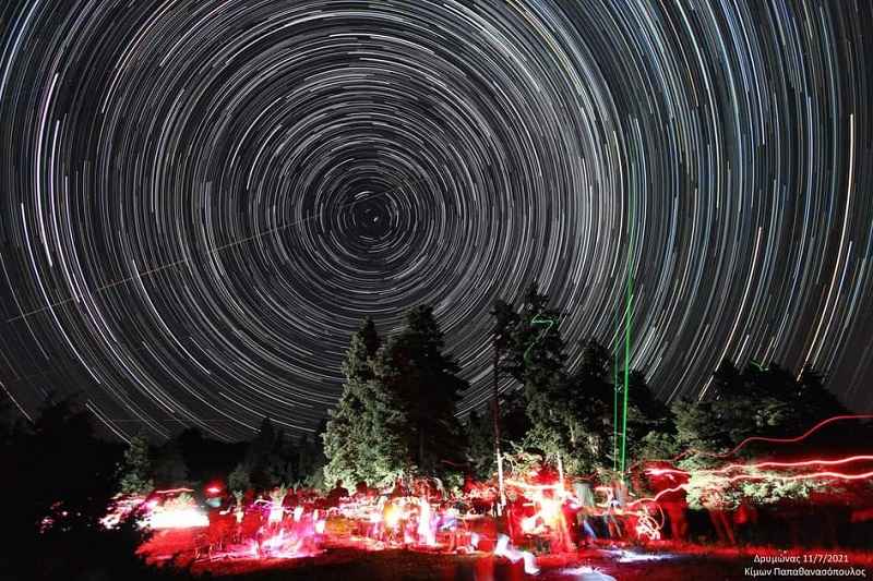 Η λήψη της παρακάτω φωτογραφίας, όπου προβάλλει τα αστρικά ίχνη (star trails) , έγινε στο Δρυμώνα Θέρμου σε υψόμετρο 1200 μέτρων, κατά τη διάρκεια της εξόρμησης στις 10&11 Ιουλίου 2021,από τα μέλη της Αστρονομικής και Αστροφυσικής Εταιρείας Δυτικής Ελλάδας, με έδρα το Αγρίνιο.
