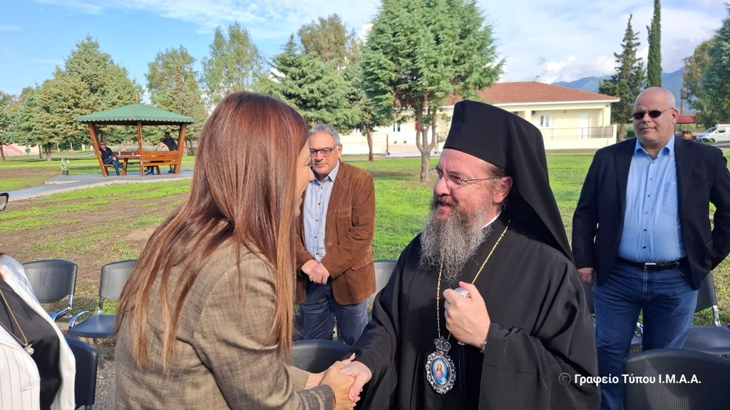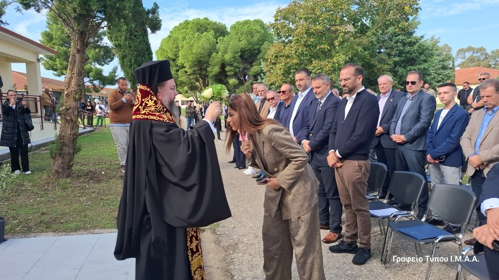 Ο Σεβασμιώτατος κατά τον σύντομο χαιρετισμό του καλωσόρισε την κα Υπουργό στην ηρωοτόκο και αγιοτόκο Αιτωλοακαρνανία και στην Ιερά Πόλη του Μεσολογγίου, «που αποτελεί το διαχρονικό και παγκόσμιο σύμβολο του ηρωισμού, της αγωνιστικότητος, της ελευθερίας και της θυσίας.