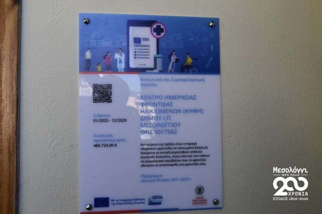 Εγκαινιάστηκε το Κέντρο Ημερήσιας Φροντίδας Ηλικιωμένων Δήμου Ιερής Πόλης Μεσολογγίου