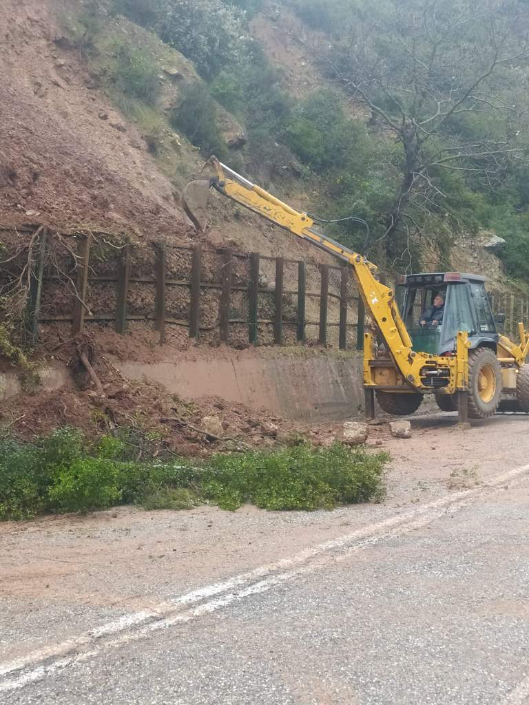 Μηχάνημα του Δήμου Θέρμου έσπευσε άμεσα στο σημείο, για την αποκατάσταση και τον καθαρισμό του οδικού δικτύου.