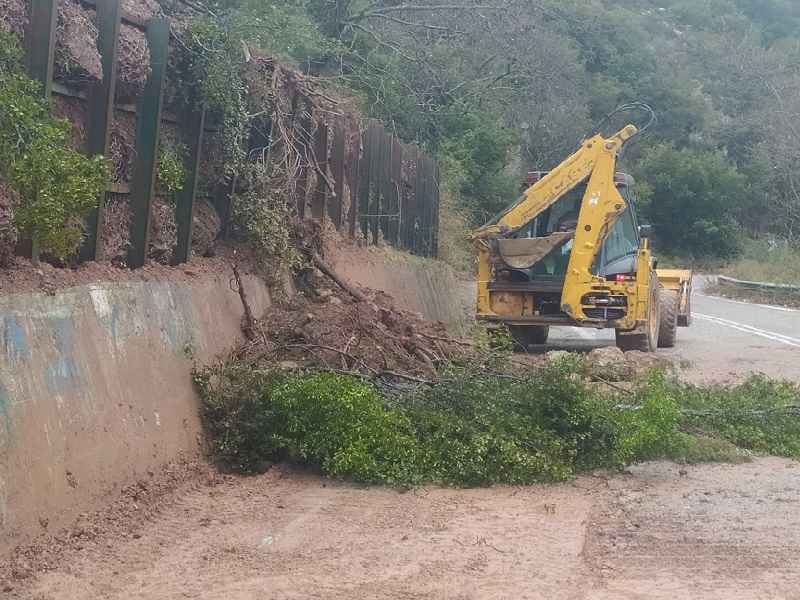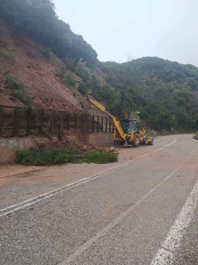 Μηχάνημα του Δήμου Θέρμου έσπευσε άμεσα στο σημείο, για την αποκατάσταση και τον καθαρισμό του οδικού δικτύου.