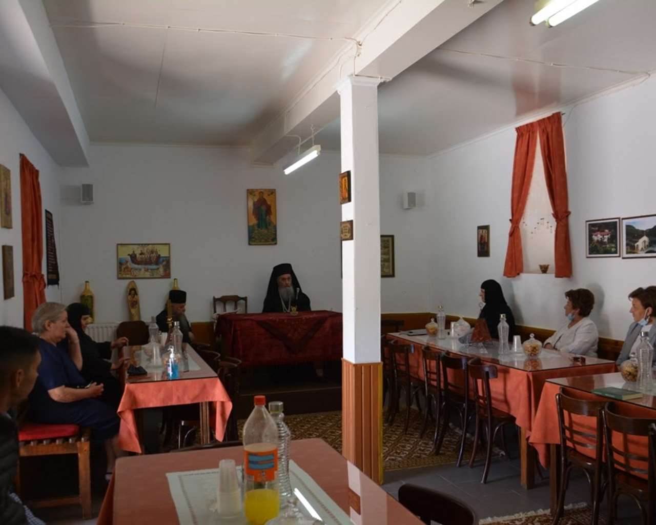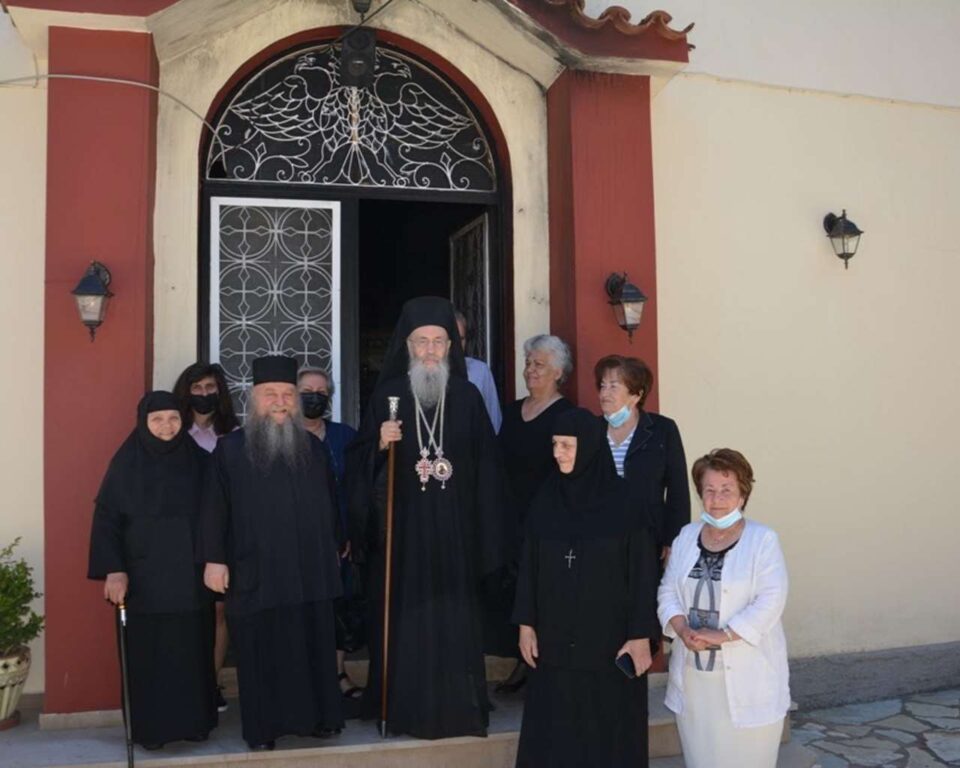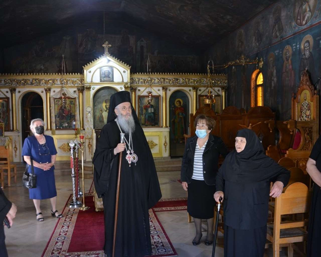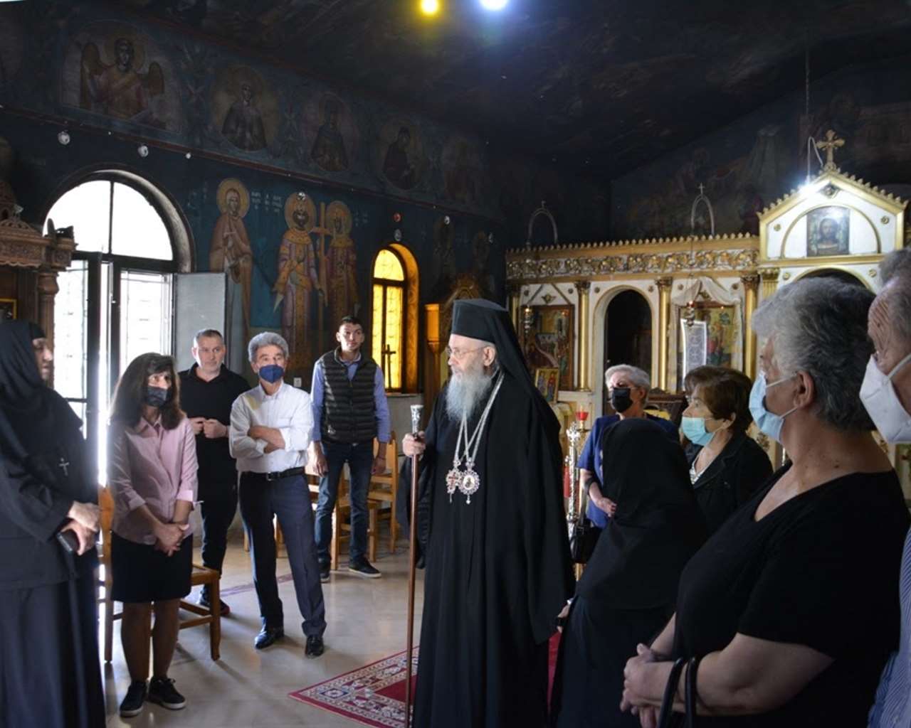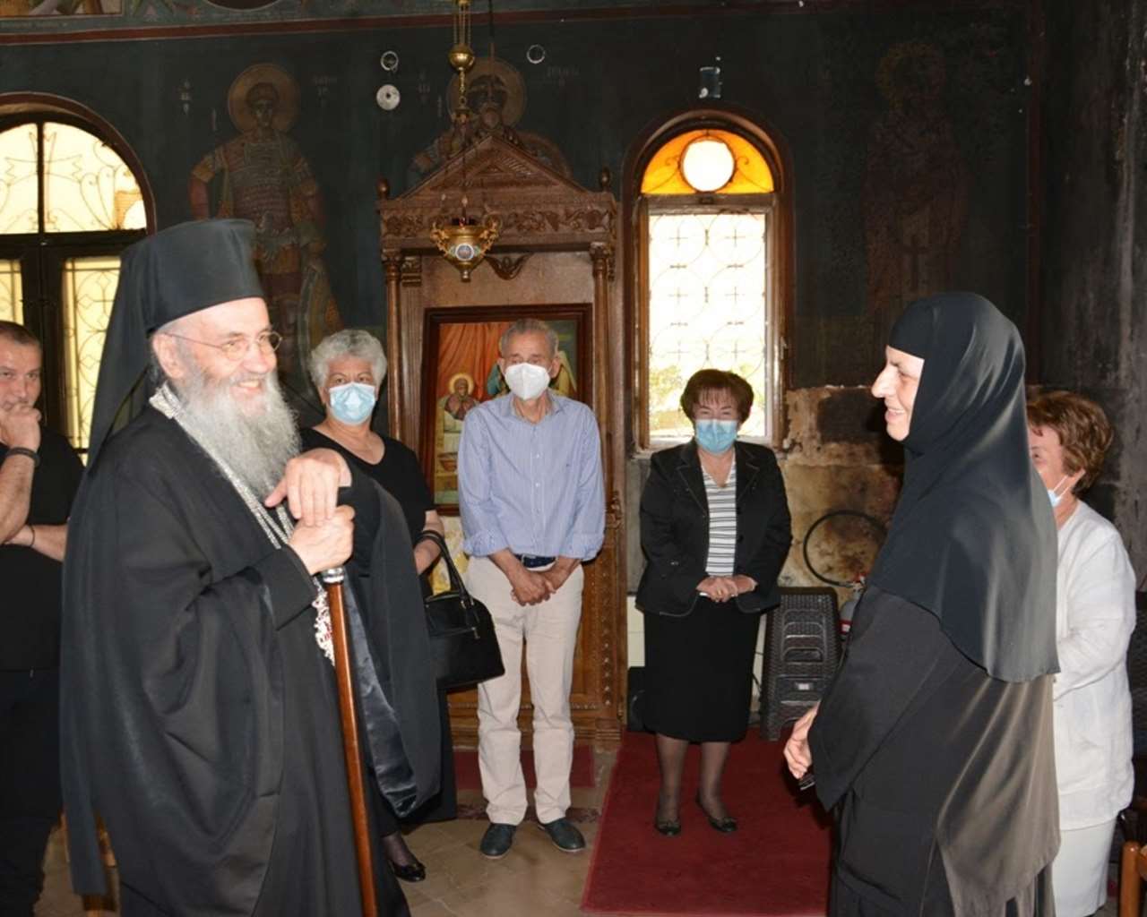 Στη συνέχεια ο Σεβασμιώτατος Τοποτηρητής επισκέφθηκε την γυναικεία Ιερά Μονή Γενεσίου της Θεοτόκου Κατερινούς, όπου τον υποδέχθηκε η Αδελφότητα και οι προσκυνητές. Η Ηγουμένη της Μονής, γερόντισσα Μαριάμ ξενάγησε τον Μητροπολίτη στους χώρους της Μονής και στο καθολικό που είχε υποστεί σοβαρές φθορές από πυρκαγιά πριν από ένα χρόνο περίπου και στη συνέχεια στο αρχονταρίκι της Μονής ακολούθησε πνευματική επικοινωνία και συζήτηση με τους προσκυνητές της Μονής.