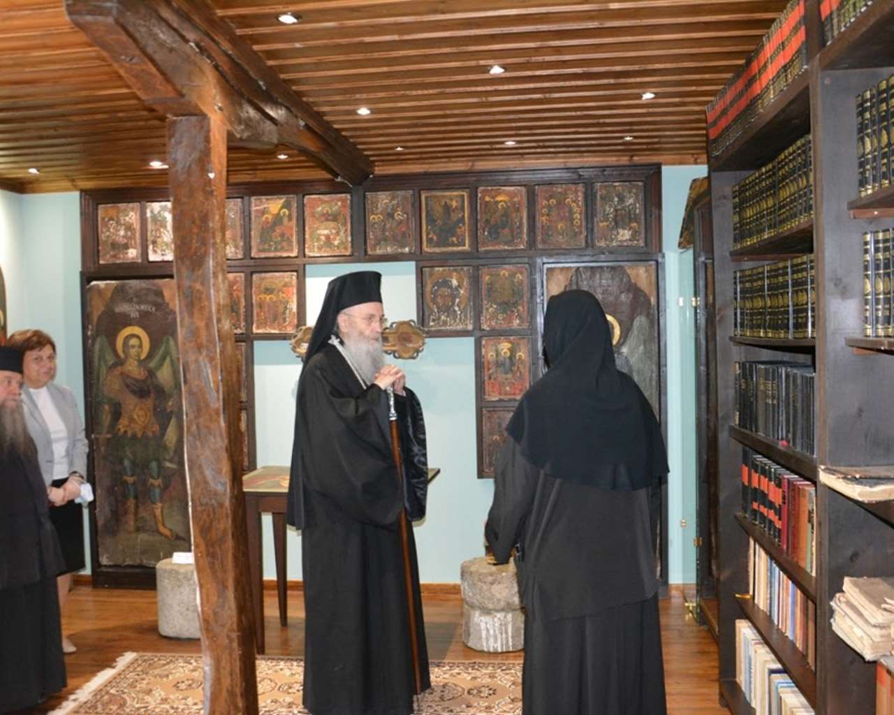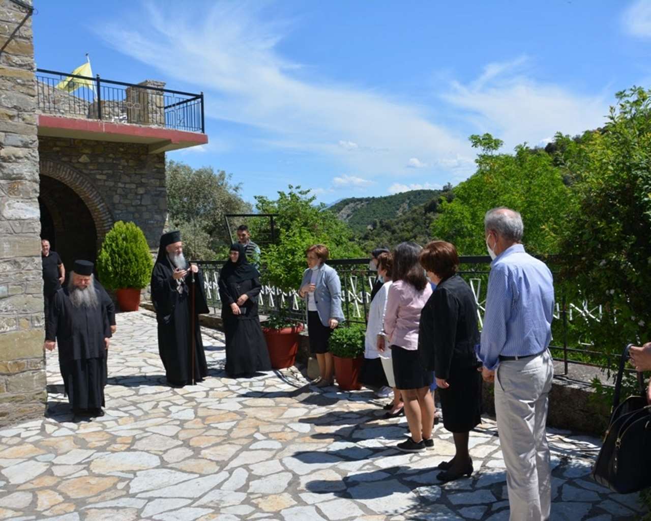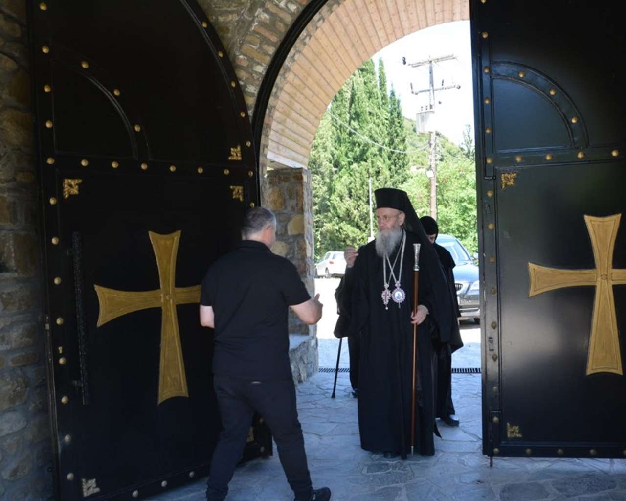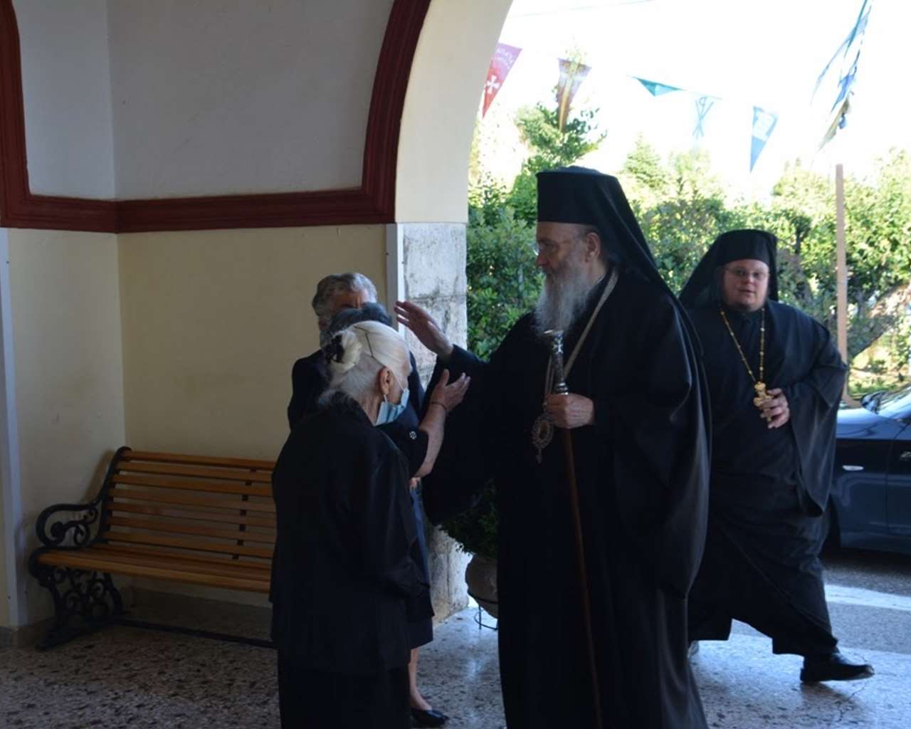 Στη συνέχεια ο Σεβασμιώτατος Τοποτηρητής επισκέφθηκε την γυναικεία Ιερά Μονή Γενεσίου της Θεοτόκου Κατερινούς, όπου τον υποδέχθηκε η Αδελφότητα και οι προσκυνητές. Η Ηγουμένη της Μονής, γερόντισσα Μαριάμ ξενάγησε τον Μητροπολίτη στους χώρους της Μονής και στο καθολικό που είχε υποστεί σοβαρές φθορές από πυρκαγιά πριν από ένα χρόνο περίπου και στη συνέχεια στο αρχονταρίκι της Μονής ακολούθησε πνευματική επικοινωνία και συζήτηση με τους προσκυνητές της Μονής.