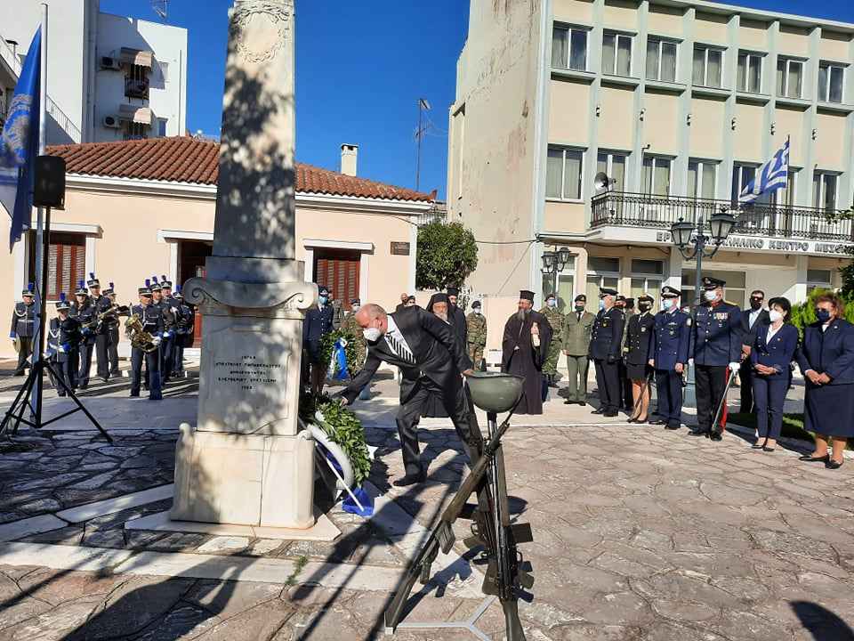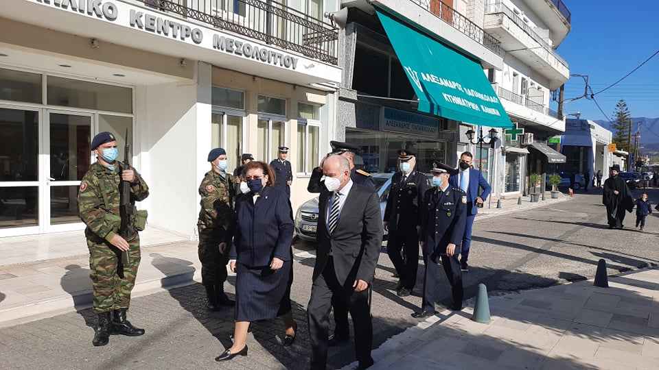 Στις εκδηλώσεις για τον εορτασμό της εθνικής επετείου την Κυβέρνηση εκπροσώπησε η Υπουργός Πολιτισμού και Αθλητισμού Λίνα Μενδώνη ενώ παρέστη και η Αντιπεριφερειάρχης Π.Ε. Αιτωλοακαρνανίας, Μαρία Σαλμά.