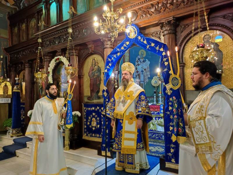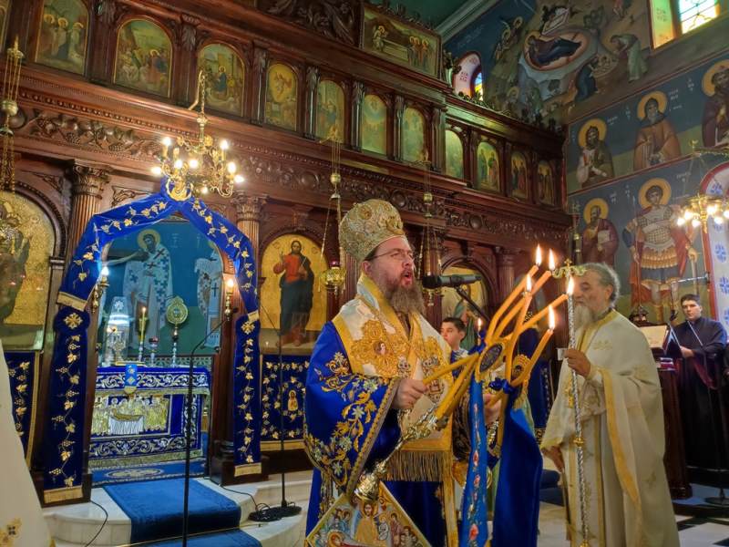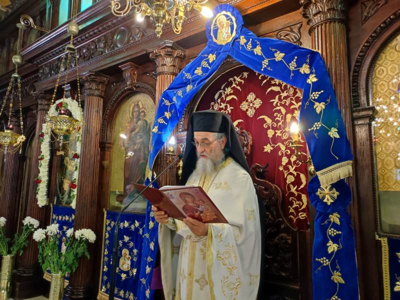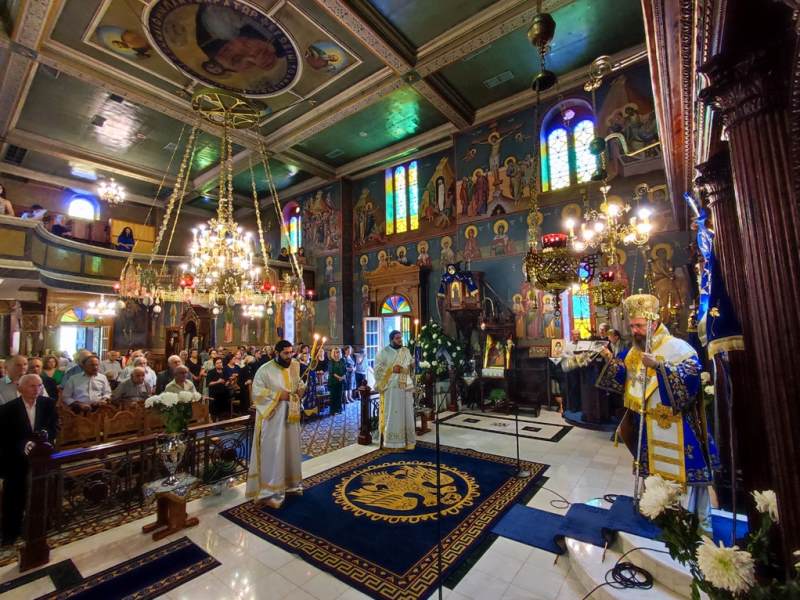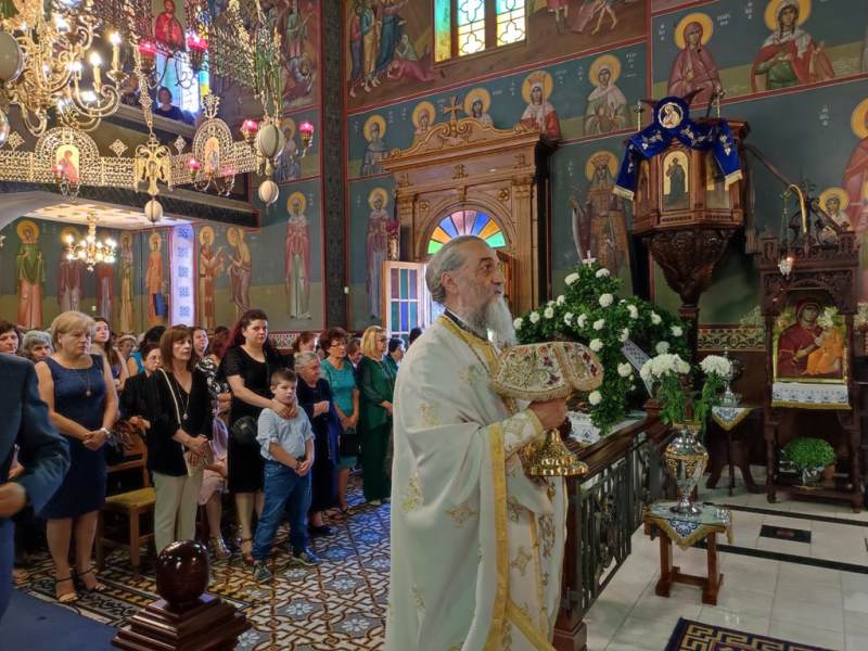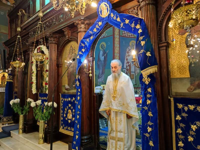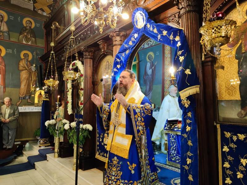 Ο Σεβασμιώτατος Μητροπολίτης Αιτωλίας και Ακαρνανίας κ.κ. Δαμασκηνός, στον Ιερό Ναό Κοιμήσεως της Θεοτόκου, χοροστάτησε στην Ακολουθία του Όρθρου και προεξήρχε στην Πανηγυρική Θεία Λειτουργία με συλλειτουργούς του, τον Πρωτοσύγκελλο, Αρχιμ. Θεόκλητο Ράπτη, τον Πρωτοπρ. Σπυρίδωνα Λόντο, τον Αρχιδιάκονο Στέφανο Καππέ και τον Διάκονο Αμβρόσιο Καλλιάφα.