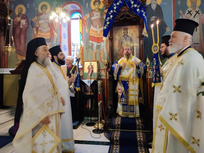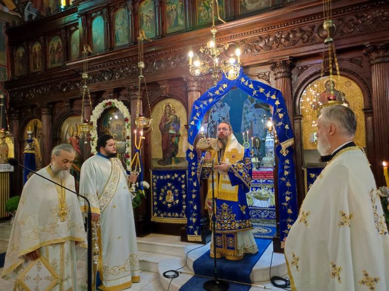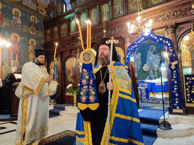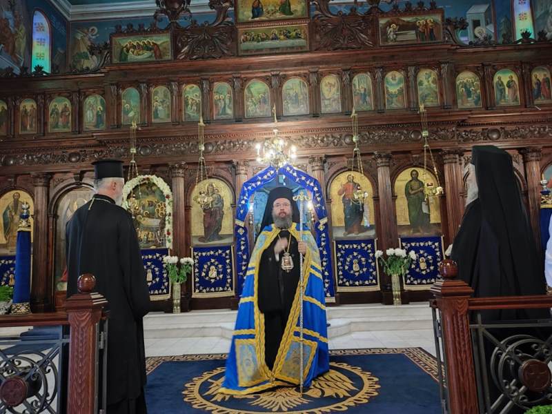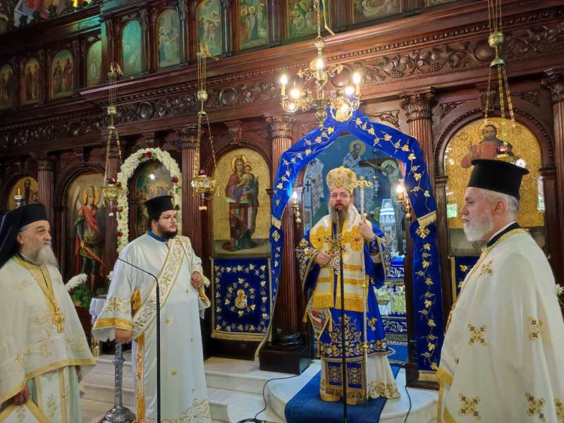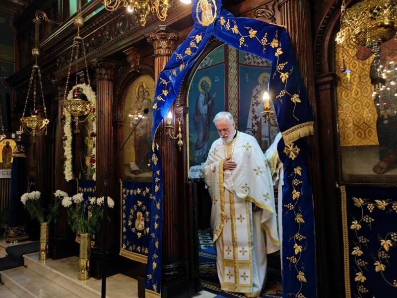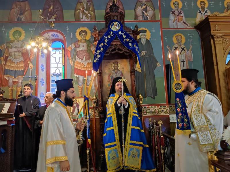Ο Σεβασμιώτατος Μητροπολίτης Αιτωλίας και Ακαρνανίας κ.κ. Δαμασκηνός, στον Ιερό Ναό Κοιμήσεως της Θεοτόκου, χοροστάτησε στην Ακολουθία του Όρθρου και προεξήρχε στην Πανηγυρική Θεία Λειτουργία με συλλειτουργούς του, τον Πρωτοσύγκελλο, Αρχιμ. Θεόκλητο Ράπτη, τον Πρωτοπρ. Σπυρίδωνα Λόντο, τον Αρχιδιάκονο Στέφανο Καππέ και τον Διάκονο Αμβρόσιο Καλλιάφα.