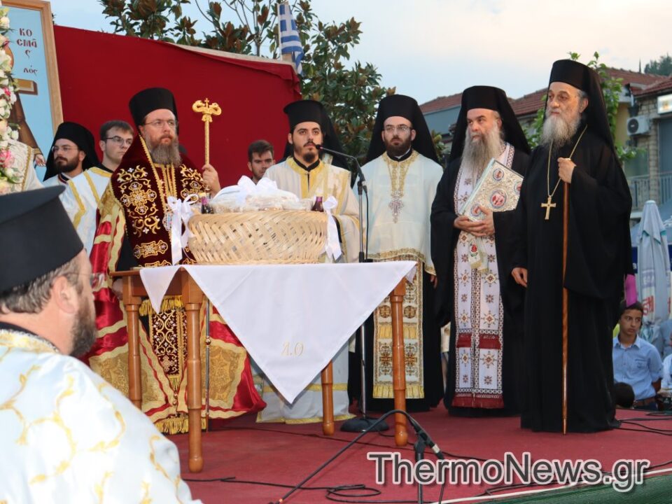 Η Ακολουθία της Ιερής Λιτανείας ξεκίνησε από τον Ιερό Ναό του Αγίου Δημητρίου και κατευθύνθηκε στην Κεντρική Πλατεία του Θέρμου, όπου πραγματοποιήθηκε Δέηση, παρουσία των Επίσημων Προσκεκλημένων του Δήμου, Εκπροσώπων της Ελληνικής Κυβέρνησης, Βουλευτών, Δημάρχων, Εκπροσώπων της Περιφέρειας Δυτικής Ελλάδας, Εκπροσώπων Δήμων, σύσσωμης της Δημοτικής Αρχής Θέρμου, Εκπροσώπων των Σωμάτων Ασφαλείας, Προέδρων Κοινοτήτων και Φορέων, καθώς επίσης κατοίκων και πολλών επισκεπτών του Θέρμου.