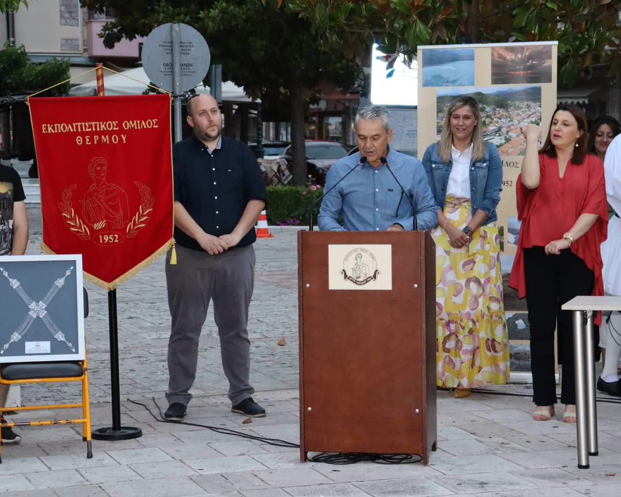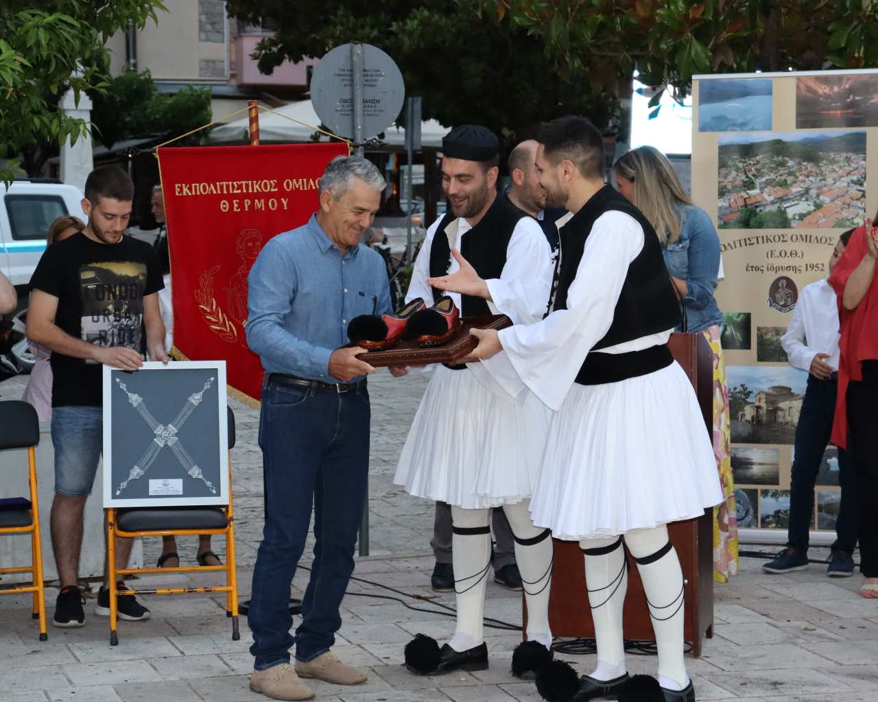 Την εκδήλωση άνοιξε ο Πρόεδρος του Εκπολιτιστικού Ομίλου Θέρμου κ. Γεώργιος Δημάκης, ο οποίος καλωσόρισε όλους τους παρευρισκομένους και αναφέρθηκε στη σπουδαία συνεισφορά του πρώην χοροδιδασκάλου κ. Θωμά Κυριαζή, στον Όμιλο.