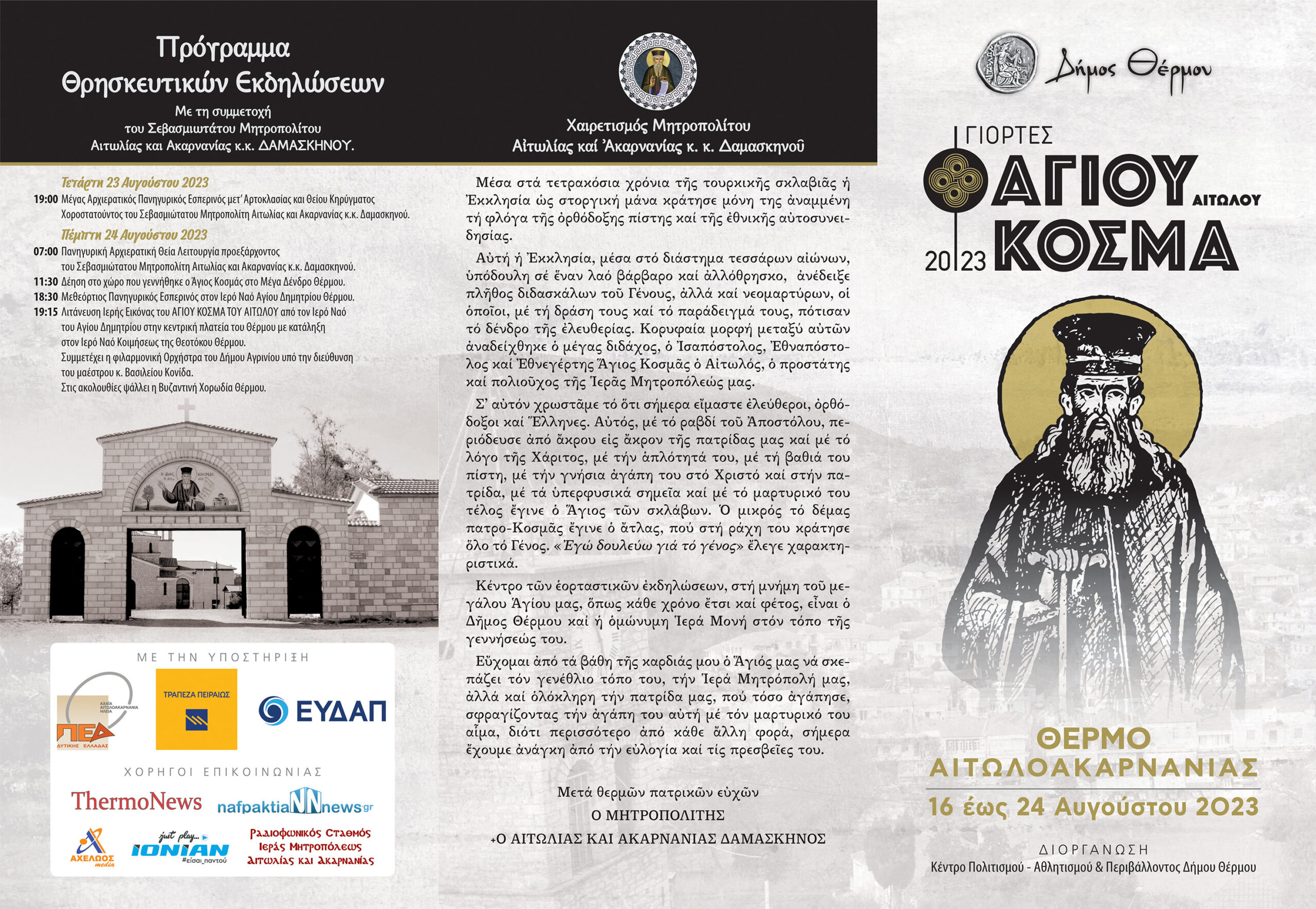 Πρόγραμμα Θρησκευτικών Εκδηλώσεων για σήμερα, Τετάρτη 23 Αυγούστου 2023.