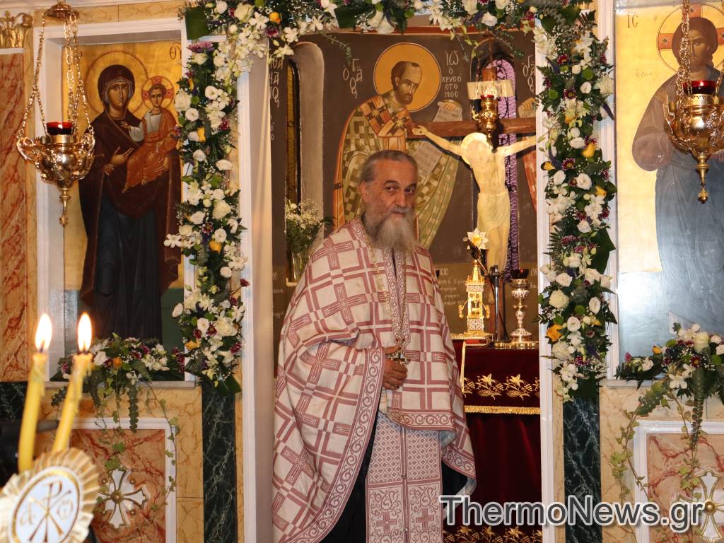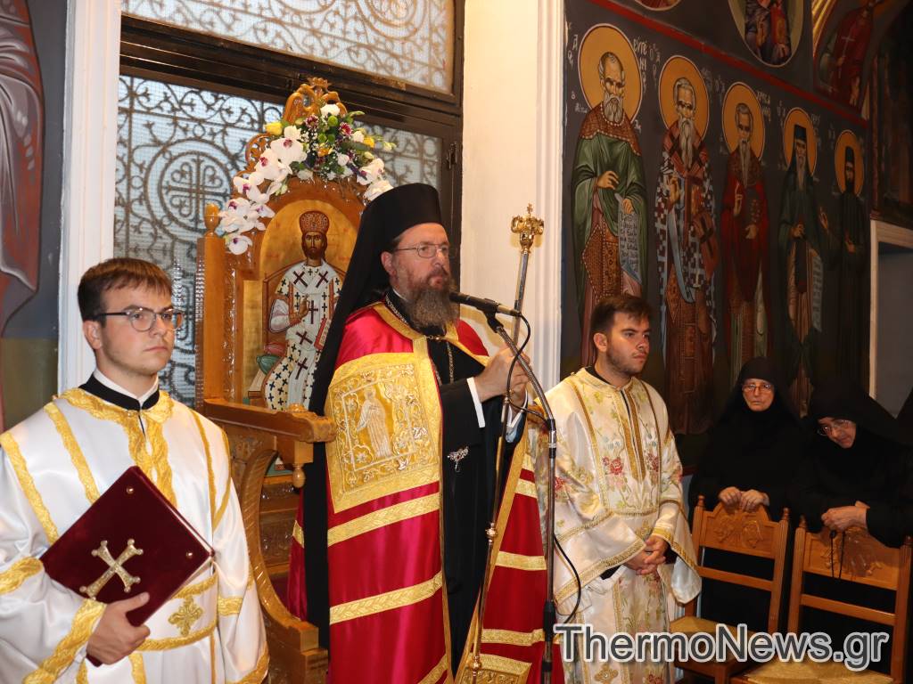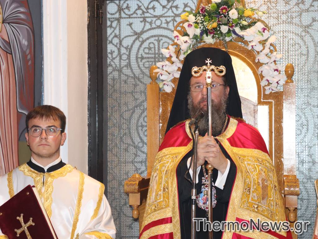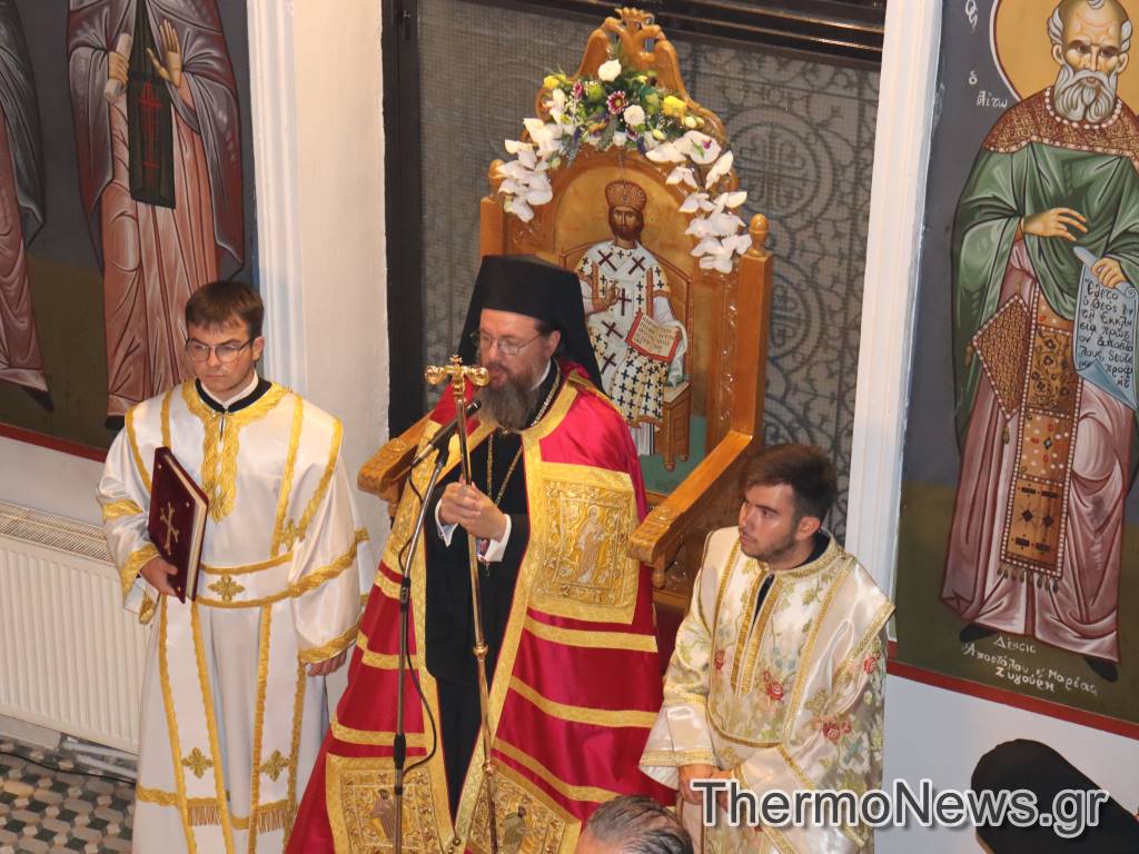 Στην Ακολουθία του Μεγάλου Εσπερινού χοροστάτησε ο Σεβασμιότατος Μητροπολίτης Αιτωλίας και Ακαρνανίας κ.κ. Δαμασκηνός και συγχοροστάτησαν ο Πανοσιολογιότατος Πρωτοσύγκελλος της Ιεράς Μητροπόλεως Αιτωλίας και Ακαρνανίας π. Θεόκλητος Ράπτης, ο Αρχιερατικός Επίτροπος Θέρμου π. Βασίλειος Λάμπος και πολλοί Σεβαστοί Πατέρες Ενοριών της περιοχής.