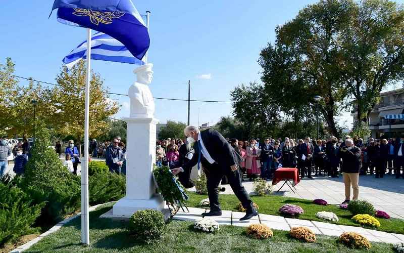 Ακολούθησε η μεγάλη στιγμή των αποκαλυπτηρίων της προτομής που την κάλυπτε η γαλανόλευκη και η κατάθεση στεφάνων.