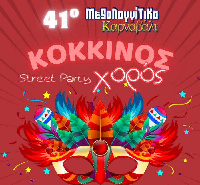 Ο Δήμος Ιεράς Πόλεως Μεσολογγίου προσκαλεί μικρούς και μεγάλους στο πιο εκρηκτικό αποκριάτικο γεγονός της χρονιάς! Στο πλαίσιο του 41ου Μεσολογγίτικου Καρναβαλιού, διοργανώνεται το εντυπωσιακό «Κόκκινος Χορός» StreetParty, μια γιορτή γεμάτη ρυθμό, χρώμα και καρναβαλική διάθεση.