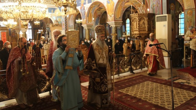 Στον Ιερό Μητροπολιτικό Ναό Ζωοδόχου Πηγής Αγρινίου ιερούργησε σήμερα, πρώτη Κυριακή του Τριωδίου, Κυριακή του Τελώνου και του Φαρισαίου, 13 Φεβρουαρίου 2022, ο Σεβασμιώτατος Μητροπολίτης Ναυπάκτου και Αγίου Βλασίου και Τοποτηρητής της Ιεράς Μητροπόλεως Αιτωλίας και Ακαρνανίας κ. Ιερόθεος.