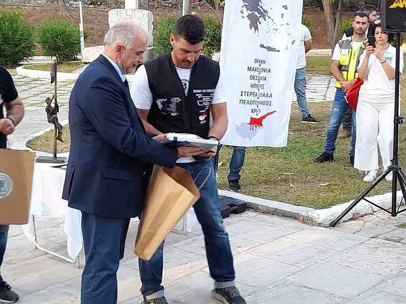 Ο Δήμαρχος Ι.Π. Μεσολογγίου μετά τα αποκαλυπτήρια της ονοματοδοσίας, παρέδωσε συμβολικά στην μητέρα του Τάσου Ισαάκ την σημαία με το έμβλημα του Δήμου, με την ευχή να έρθει σύντομα η μέρα όπου η Κύπρος θα είναι ενωμένη κι ελεύθερη.