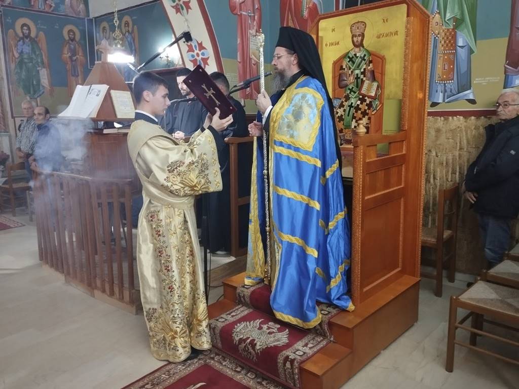Ο Σεβασμιώτατος ανέλυσε, μέσα από τις ευχές και τις επικλίσεις του Ιερέως στην Θεία Λειτουργία, την παρουσία και την συμμετοχή των Αγίων Αγγέλων, τονίζοντας ότι: «Αυτό που όλοι μαζί συνεπιτελούμε αυτή τη στιγμή είναι η πλέον μοναδική, συγκλονιστική και ανεπανάληπτη εμπειρία της παρουσίας των Αγγελικών Δυνάμεων μέσα στον κόσμο. Μέσα στην Θεία Λειτουργία υπάρχει αυτή η μοναδική εμπειρία, ότι συλλειτουργούμε, συμπροσευχόμαστε και συνεπιτελούμε με τους Αγγέλους το Μυστήριο της Αναίμακτης Θυσίας Γι’ αυτό η Θεία Λειτουργία ενώνει την γη με τον ουρανό και αποτελεί μία σύζευξη του ορατού με τον αόρατο κόσμο».
