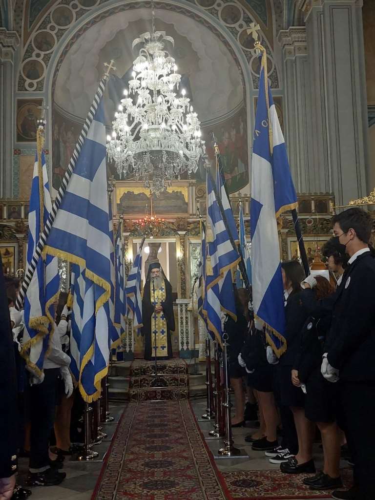 Οι εκδηλώσεις για την Εθνική Εορτή της 28ης Οκτωβρίου 1940 στην Ι.Π. Μεσολογγίου ξεκίνησαν το πρωί με την Δοξολογία στον Μητροπολιτικό Ναό Αγίου Σπυρίδωνος παρουσία του Δημάρχου Ι.Π. Μεσολογγίου, Κώστα Λύρου και του Γ.Γ. Επαγγελματικής Εκπαίδευσης & Δια Βίου Μάθησης, Γιώργου Βούτσινου, ως εκπροσώπου της Ελληνικής Κυβέρνησης.