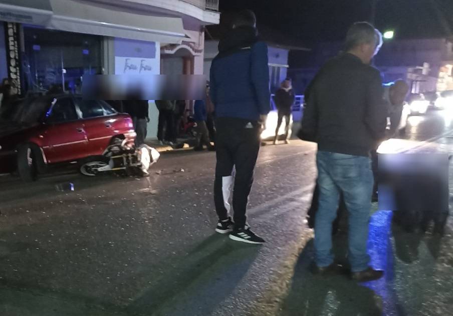 Δίκυκλο συγκρούστηκε με ΙΧ επιβατικό στον κεντρικό δρόμο στην είσοδο του χωριού.